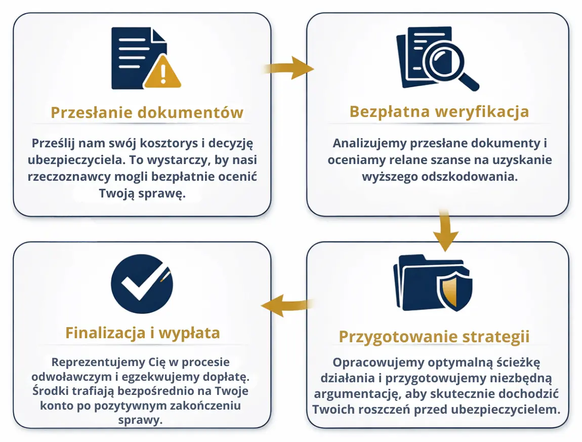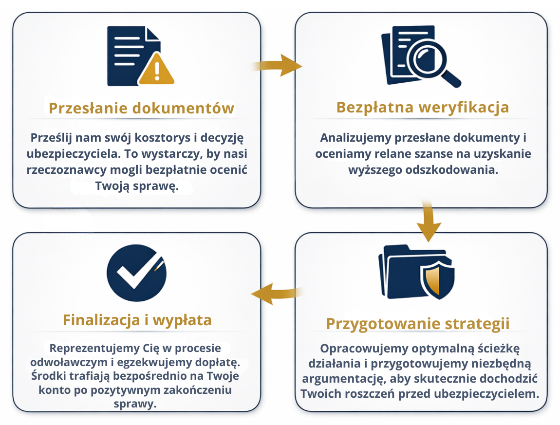 Tak – działamy na terenie całego kraju, bez względu na miejsce zdarzenia. Obsługujemy Klientów z takich miast jak: Warszawa, Kraków, Łódź, Wrocław, Gdańsk, Katowice, Poznań, Lublin, Białystok, Rzeszów, Olsztyn, Bydgoszcz, Toruń, Szczecin, Opole, Kielce, Zielona Góra i wielu innych miejscowości.